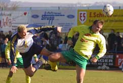 Folgezeit spielte sich das Geschehen meist im Mittelfeld ab, wobei nicht zu übersehen war, dass die Nullneuner in den Zweikämpfen
